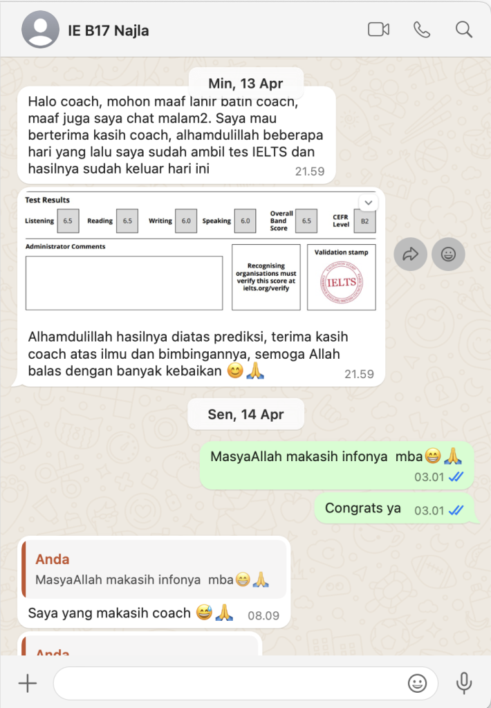 Harga akan naik sewaktu-waktu karena banyaknya yang ingin mendapatkan kesempatan untuk belajar IELTS dengan harga yang jauh lebih murah dengan kualitas yang sama.