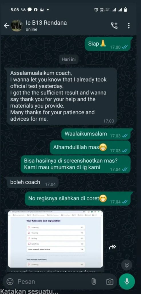 Pengalaman mengajar TOEFL dan IELTS lebih dari 5 tahun dengan berbagai siswa dengan latar belakang dan level yang berbeda.
